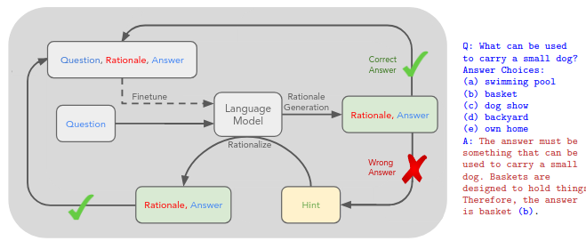 This technique, the "Self-Taught Reasoner" (STaR), relies on this simple loop: generate rationales to answer many questions, prompted with a few rationale examples; if the generated answers are wrong, try again to generate a rationale given the correct answer; fine-tune on all the rationales that ultimately yielded correct answers; repeat. Fantastic.