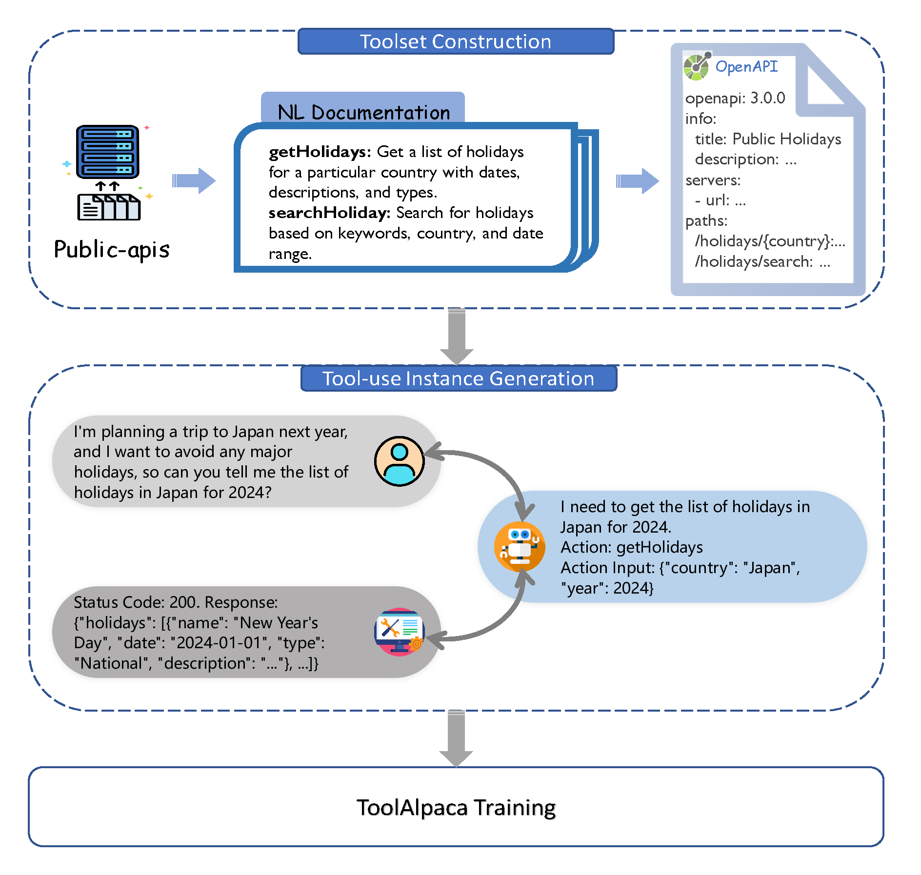 One of the problems I frequently run into is that my local LLMs can’t use a customer tool I have defined. ToolAlpaca is a framework that aims to help smaller LLMs learn generalized tool-use abilities with minimal human supervision. It approaches the problem by generating a tool-use corpus via a multi-agent simulation environment, providing 3.9k tool-use instances from more than 400 tools.