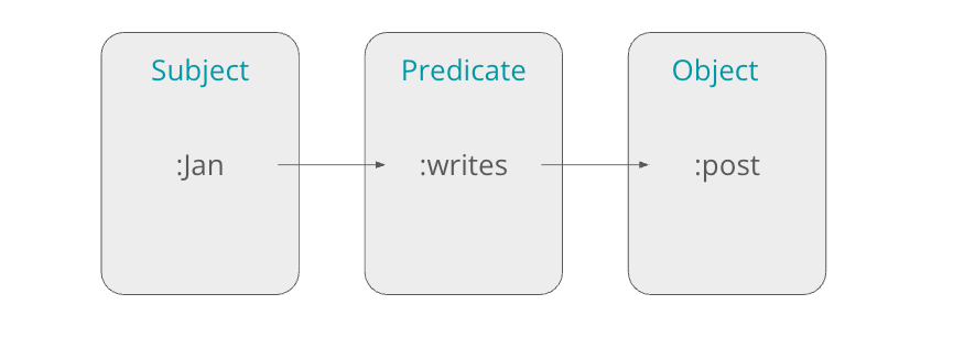 Within the context of the RDF, we use unique resource identifiers (URI) to uniquely identify resources within the graph. We can add attributes to the resources. I.e., Jan is a person and author. Post could be Substack, Text.