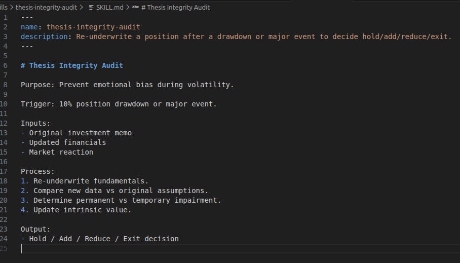 My artificial investment team is a small illustration of what becomes possible when the translation layer is cheap. I built fourteen analytical playbooks with real-time market sensors and a three-layer persistent memory within a few hours.